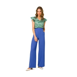 Kalhoty se širokými nohavicemi a modelujícími záševky v pase, elegantní a šik. Kalhoty se skrytým zapínáním na zip a postranními kapsami.