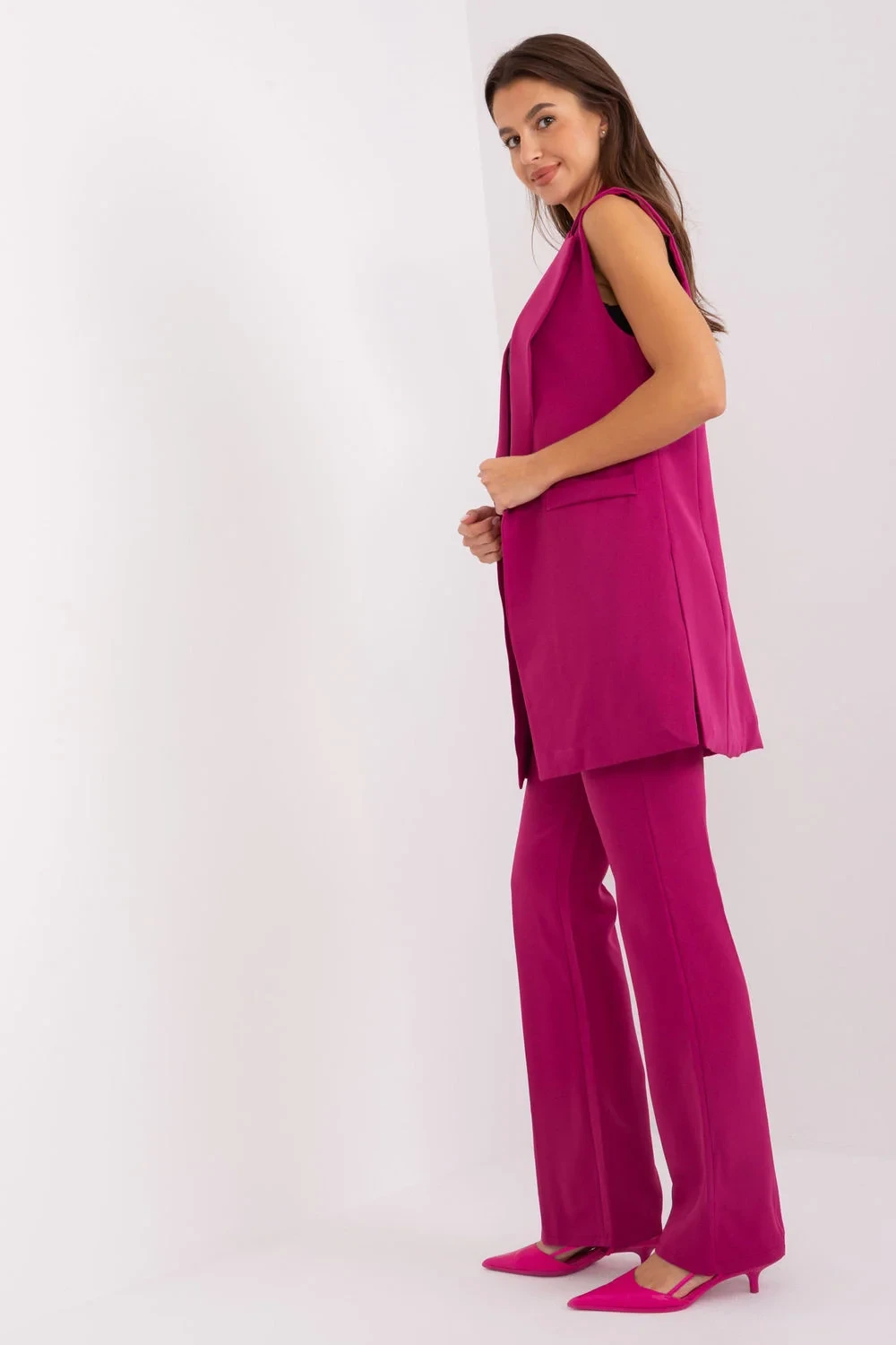 Tato souprava vesty a kalhot je ideální volbou pro různé příležitosti, od formálního po pracovní nebo každodenní styl. Je vyrobena z vysoce kvalitního polyesteru a poskytuje elegantní vzhled a odolnost. Kalhoty s širokými nohavicemi a vysokým pasem dodávají šmrnc, zatímco hladký design a absence kapes vytvářejí elegantní vzhled. Podšitá vesta je pohodlným doplňkem, který dodává celé soupravě luxusní vzhled. Oba díly soupravy jsou dlouhé, což dodává soupravě elegantní nádech. Kalhoty s vysokým pasem zvýrazňují pas a polyesterová tkanina je nejen odolná, ale také příjemná na nošení. Jedná se o ideální volbu pro slavnostní příležitosti, do práce nebo na večerní posezení.