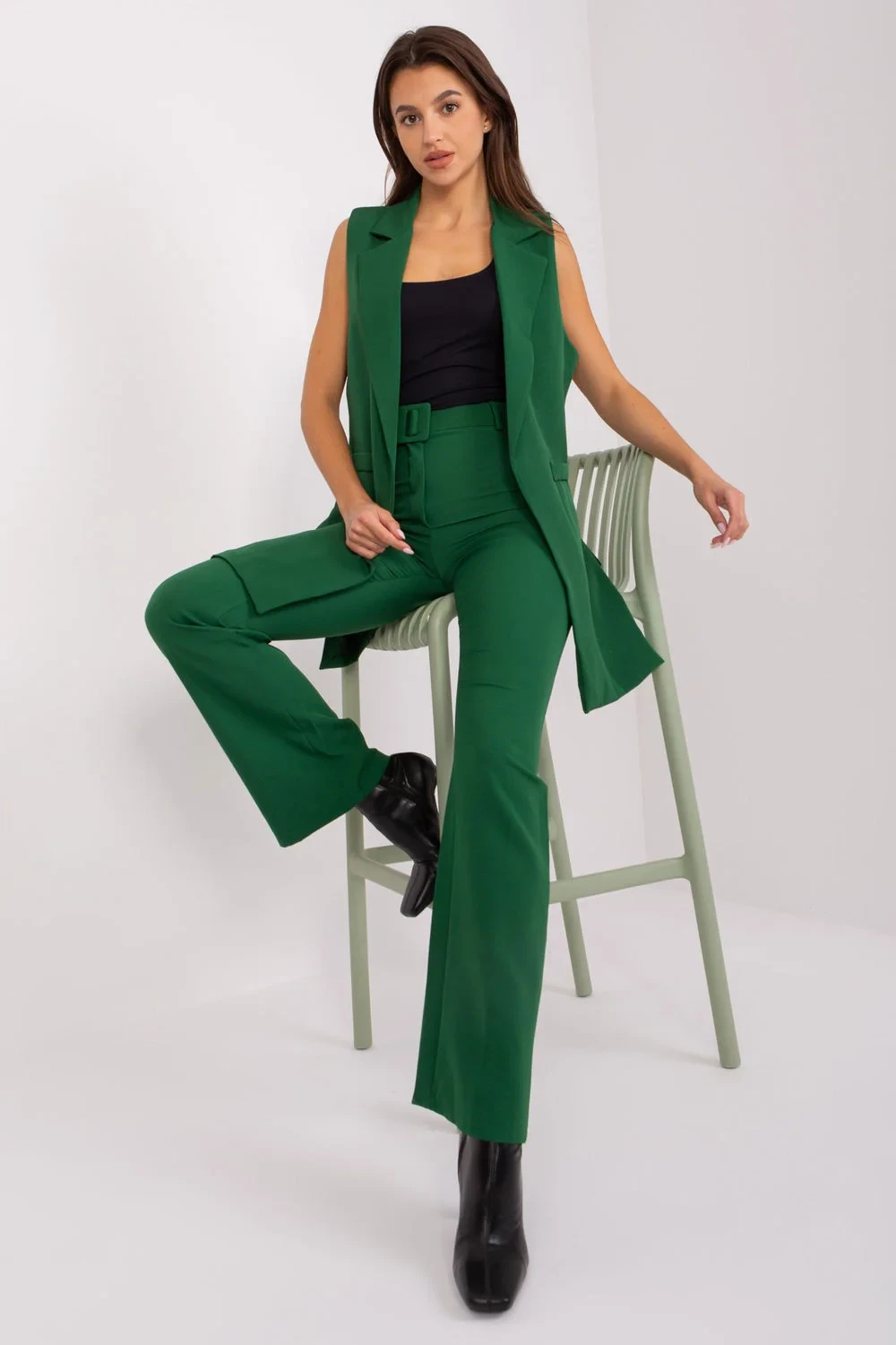 Tato souprava vesty a kalhot je ideální volbou pro různé příležitosti, od formálního po pracovní nebo každodenní styl. Je vyrobena z vysoce kvalitního polyesteru a poskytuje elegantní vzhled a odolnost. Kalhoty s širokými nohavicemi a vysokým pasem dodávají šmrnc, zatímco hladký design a absence kapes vytvářejí elegantní vzhled. Podšitá vesta je pohodlným doplňkem, který dodává celé soupravě luxusní vzhled. Oba díly soupravy jsou dlouhé, což dodává soupravě elegantní nádech. Kalhoty s vysokým pasem zvýrazňují pas a polyesterová tkanina je nejen odolná, ale také příjemná na nošení. Jedná se o ideální volbu pro slavnostní příležitosti, do práce nebo na večerní posezení.