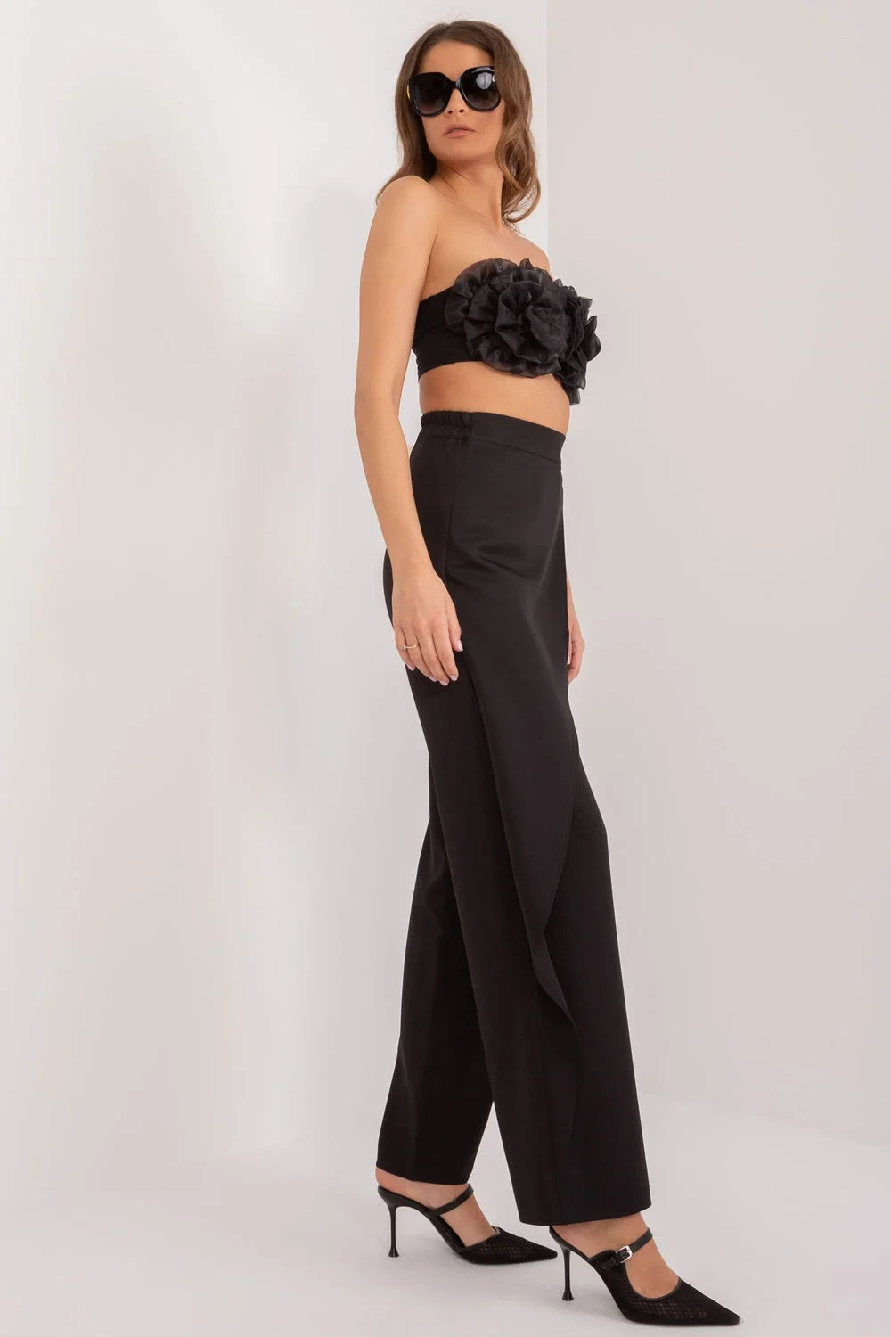 Látkové kalhoty, které elegantně doplní každý styling. Jejich hladká tkanina a klasický střih jim dodávají jedinečný charakter, který je ideální pro různé příležitosti, zejména ty formálnější. Jsou vyrobeny z vysoce kvalitní bavlny, která zajišťuje přirozené dýchání pokožky a celodenní pohodlí při nošení. Složení látky bylo pečlivě vybráno tak, aby zaručovalo trvanlivost a pohodlí. Kalhoty mají střední/pravidelný střih, takže jsou univerzální a snadno se přizpůsobí různým siluetám. Jejich zapínání na zip plus knoflík dodává eleganci a třídu a zároveň pevně drží. Tyto kalhoty jsou spolehlivou volbou pro ženy, které ocení nadčasový styl a pohodlí, zejména pro důležitá jednání nebo formální události.