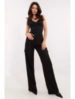 Tyto dámské látkové kalhoty jsou nabídkou pro ženy, které oceňují klasiku v moderním provedení. Vyrobené z vysoce kvalitní směsi bavlny a elastanu, zajistí pohodlí nošení a ideální přizpůsobení postavě. Model s vysokým pasem krásně zdůrazňuje pas, zatímco široké nohavice dodávají lehkost a elegantní charakter stylizaci. Kalhoty se zapínají na zip a knoflík, což zaručuje pohodlí a estetické provedení. Boční kapsy s vložkami přidávají praktičnost a klasický vzhled. Jejich hladký vzor a elegantní styl z nich dělají skvělou volbu na každý den, do práce a také na formální události. Jsou to univerzální kus oblečení, který snadno sladíte s košilí, blůzkou nebo sako.