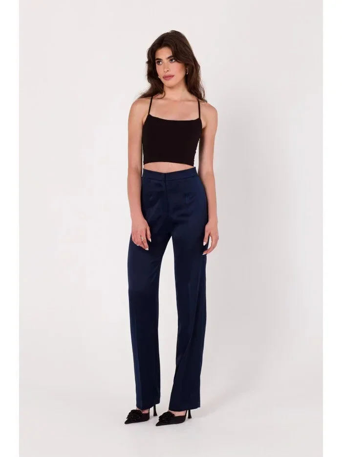 DETAILY PRODUKTU: tkaná saténová tkanina kalhoty s rovnými nohavicemi zapínání vpředu na zip a háček bez podšívky Naše modelka je 168 cm vysoká a nosí velikost S Navrženo a vyrobeno v Polsku