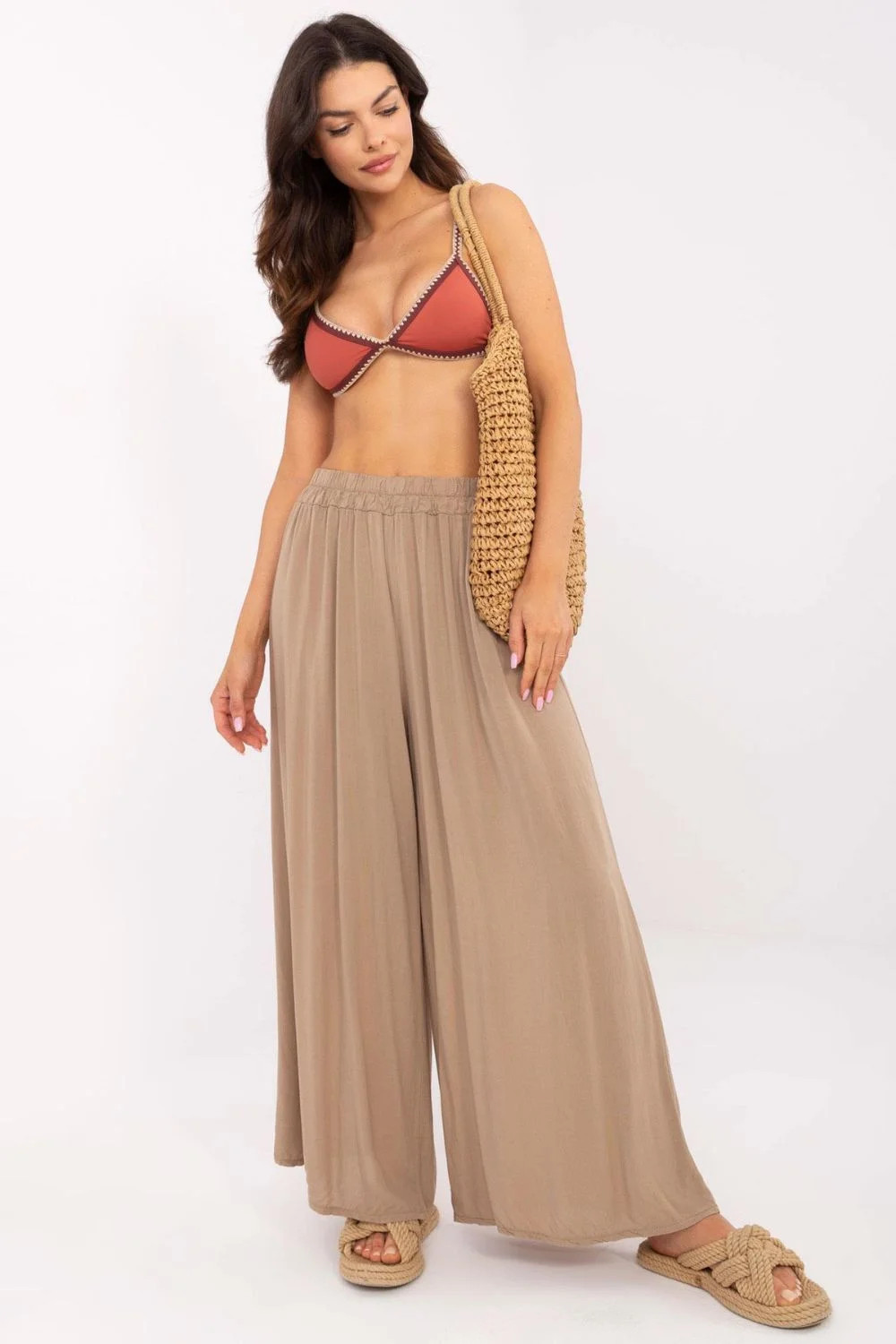 Dámské látkové kalhoty typu švédské, ideální na každodenní nošení v ležérním stylu. Vyrobené z lehké a prodyšné viskózy, poskytují pohodlí a volnost pohybu. Široké nohavice jim dodávají elegantní a zároveň uvolněný charakter. Vysoký pas zdůrazňuje pas a elastický lem zaručuje pohodlné přizpůsobení. Hladký materiál dělá kalhoty univerzální a snadné k stylování. Skvělá volba pro ženy, které ocení pohodlí a stylový vzhled.