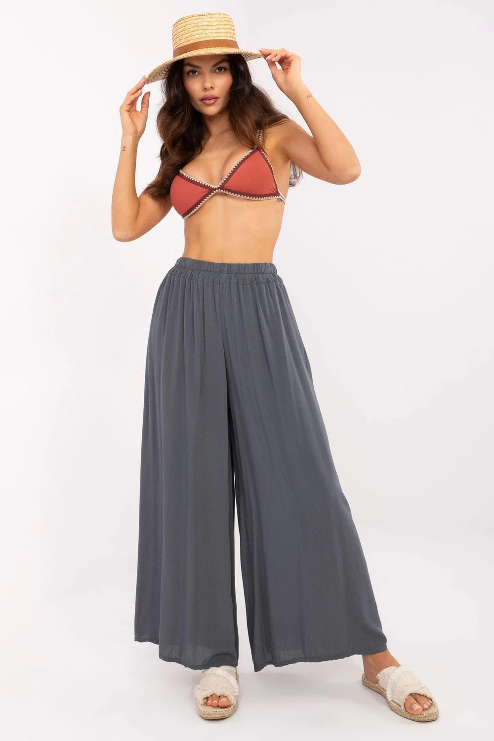 Dámské látkové kalhoty typu švédské, ideální na každodenní nošení v ležérním stylu. Vyrobeny z lehké a prodyšné viskózy, poskytují pohodlí a volnost pohybu. Široké nohavice jim dodávají elegantní a zároveň volný charakter. Vysoký pas zdůrazňuje pas, a elastický pásek zajišťuje pohodlné přizpůsobení. Hladký materiál dělá kalhoty univerzální a snadné na styling. Skvělá volba pro ženy, které ocení pohodlí a módní vzhled.