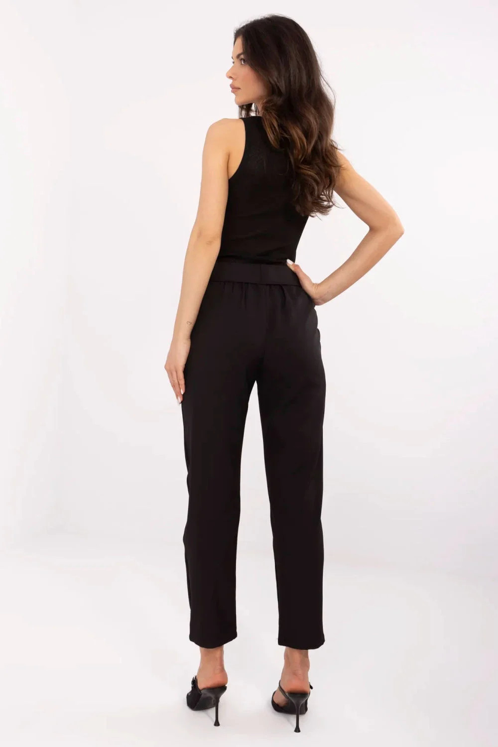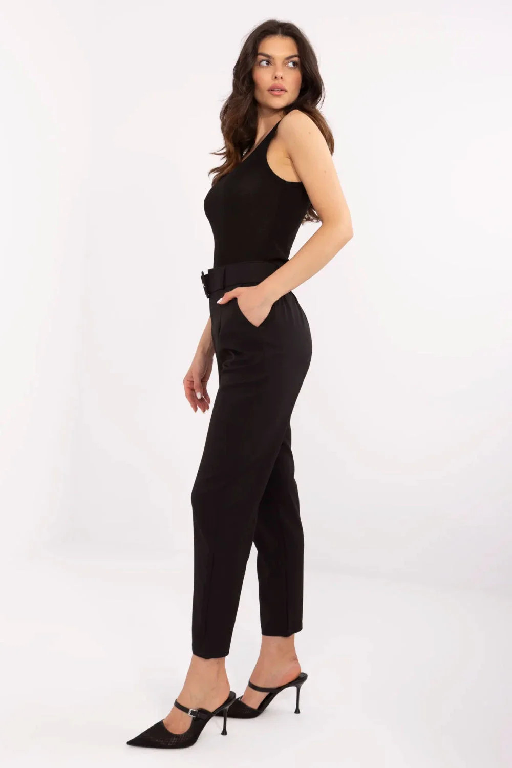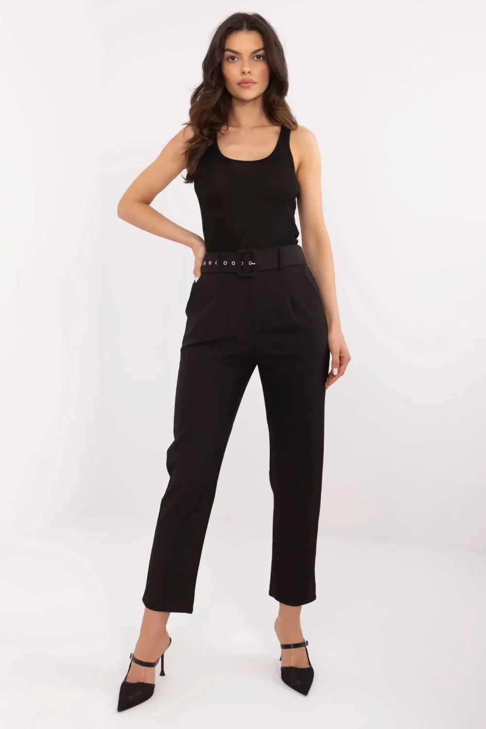 Elegantní dámské cigarety jsou skvělou volbou pro ženy, které si váží stylu a pohodlí. Vyrobené z vysoce kvalitního materiálu, kombinujícího polyester a elastan, zaručují pohodlí nošení a ideální přizpůsobení postavě. Klasický hladký vzor činí kalhoty univerzálními a skvěle se hodí na různé příležitosti, jak do práce, tak na slavnostní události. Jejich vysoký pas zdůrazňuje pas, a zužující se nohavice dodávají eleganci a zeštíhlují nohy. Kalhoty se zapínají na praktický zip a knoflík, a navíc jsou vybaveny bočními kapsami a páskem se sponou, což jim dodává stylového završení. Je to ideální volba pro ženy, které chtějí vypadat elegantně a cítit se pohodlně v každé situaci.