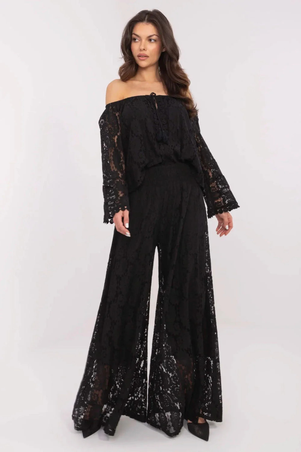 Elegantní, krajkové kalhoty palazzo jsou stylovým návrhem pro ženy, které ocení eleganci a pohodlí. Vyrobené z jemné korálkové krajky na podšívce spojují jemný šarm s pohodlím každodenního nošení. Materiál z směsi bavlny a nylonu zajišťuje, že jsou lehké, prodyšné a příjemné na dotek. Široké nohavice ve stylu palazzo se krásně ukládají při pohybu, dodávají postavě lehkost a moderní charakter. Bez zapínání zajistí pohodlné oblékání a hladké dokončení v pase. Tento model se skvěle hodí na různé příležitosti, do práce, každodenně, ale i na večírky nebo elegantní vycházky. Stylová krajka a klasická délka vytvářejí efekt wow bez námahy, stačí přidat jednoduché topy nebo elegantní halenku.