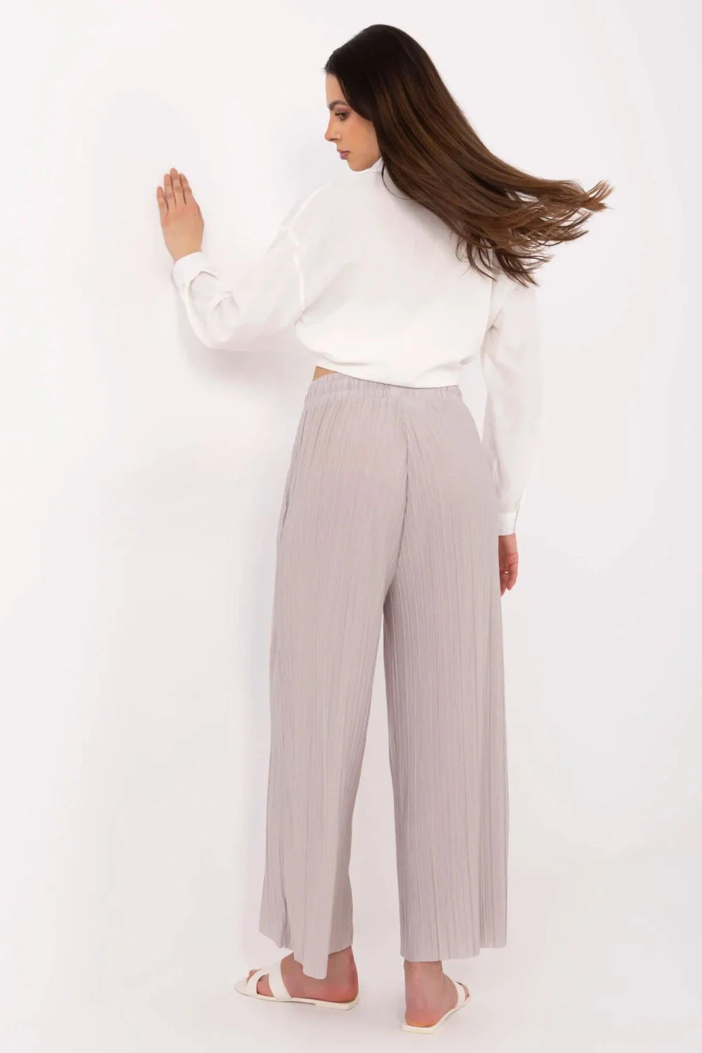 Tyto casualové dámské kalhoty jsou kombinací pohodlí a moderního stylu. Vyrobené z měkké směsi viskózy a polyesteru, skvěle padnou na postavě, poskytují pohodlí po celý den. Hladký materiál a klasický střih zaručují, že kalhoty budou skvěle vypadat v každodenních stylizacích - jak do práce, tak na procházku nebo setkání s přáteli. Vysoký pas a šněrování v pase hezky zdůrazňují pas, zatímco široké nohavice dodávají lehkost a volnost pohybu. Praktické boční kapsy doplňují funkční charakter tohoto modelu.