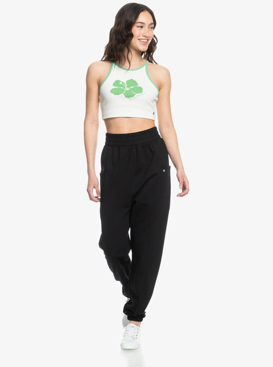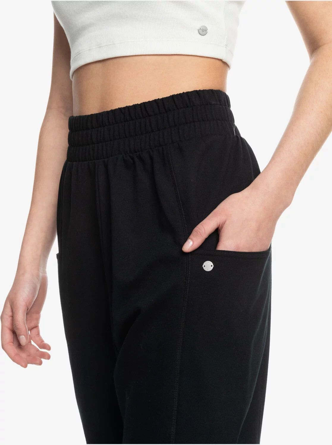 Praktické boční kapsy poskytují úložný prostor, zatímco kovová destička Roxy dodává stylový detail.
