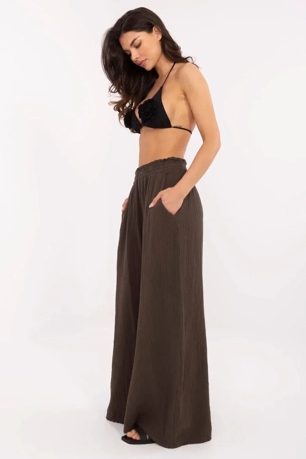 Lehké a stylové mušlinové kalhoty pro ženy jsou ideální volbou na teplé dny. Vyrobené z prodyšné bavlny, zaručují pohodlné nošení a přirozenou volnost pohybů. Střih palazzo s širokými nohavicemi jim dodává elegantní, ale zároveň ležérní charakter, ideální na každodenní nošení. Elastický pásek zajistí pohodlné přizpůsobení, zdůrazní pas a zvýší pohodlí při nošení. Boční kapsy přidávají praktičnost a hladký vzor dělá kalhoty univerzální a snadno stylovatelné. Skvěle ladí jak s přiléhavým topem, tak s volnější košilí, vytvářejí lehké a módní sestavy na různé příležitosti.