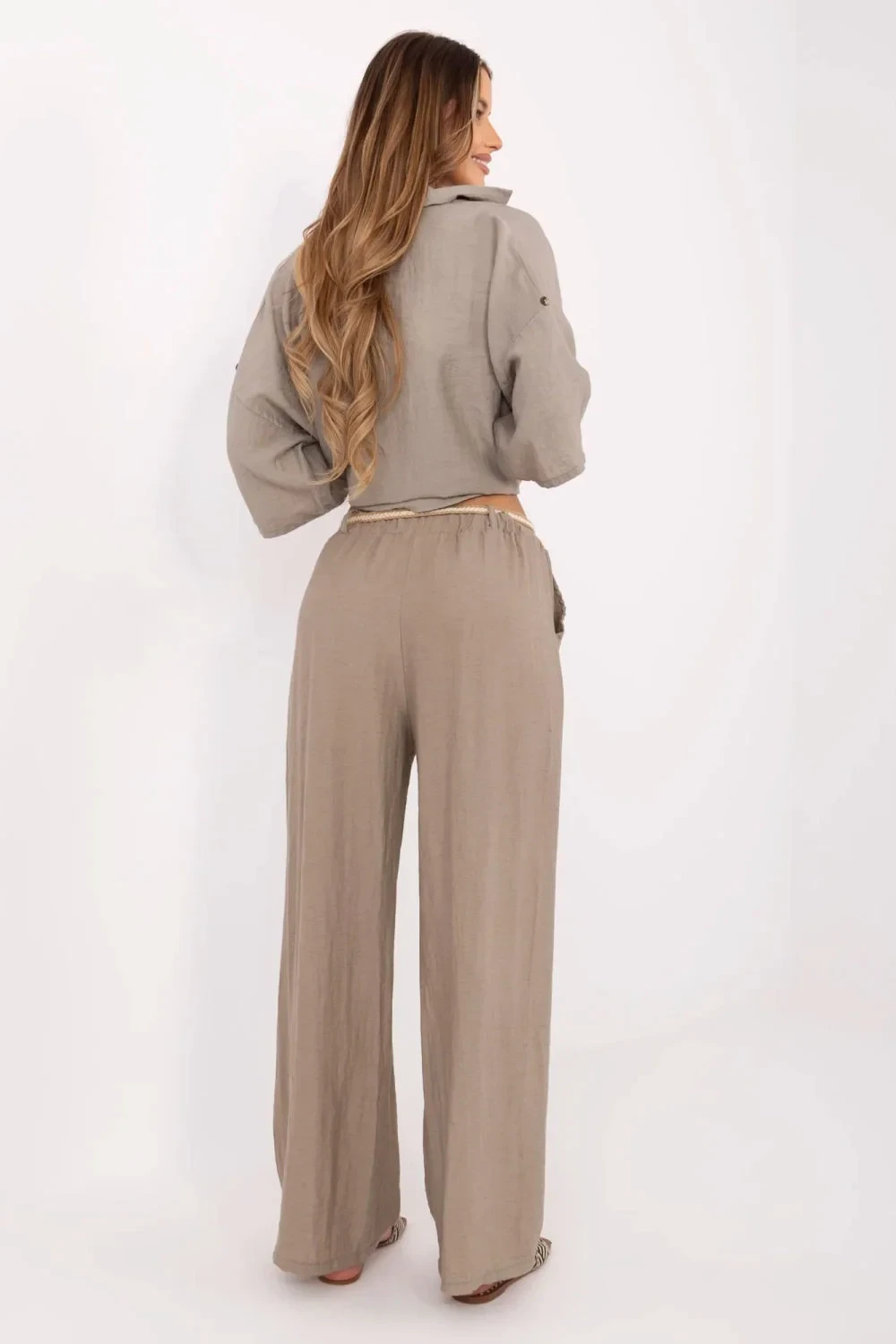 Lehké a stylové dámské látkové kalhoty v boho stylu, vytvořené s ohledem na každodenní pohodlí a neformální eleganci. Vyrobené z prodyšné směsi viskózy a lnu, ideální pro teplejší dny, nabízejí prodyšnost a pohodlí. Model s vysokým pasem a širokými nohavicemi, které se krásně tvarují v pohybu a zúžují siluetu. Bez klasického zapínání jsou kalhoty snadno nasazovatelné, s zapínacím páskem, který umožňuje přizpůsobit pas a zdůraznit postavu. Boční kapsy přidávají funkčnost a neformální charakter. Hladká látka a jednoduchý střih umožní snadné sladění kalhot s topem, košilí nebo lehkou halenkou, vytvoříte tak volný každodenní outfit s nádechem přírodní lehkosti.