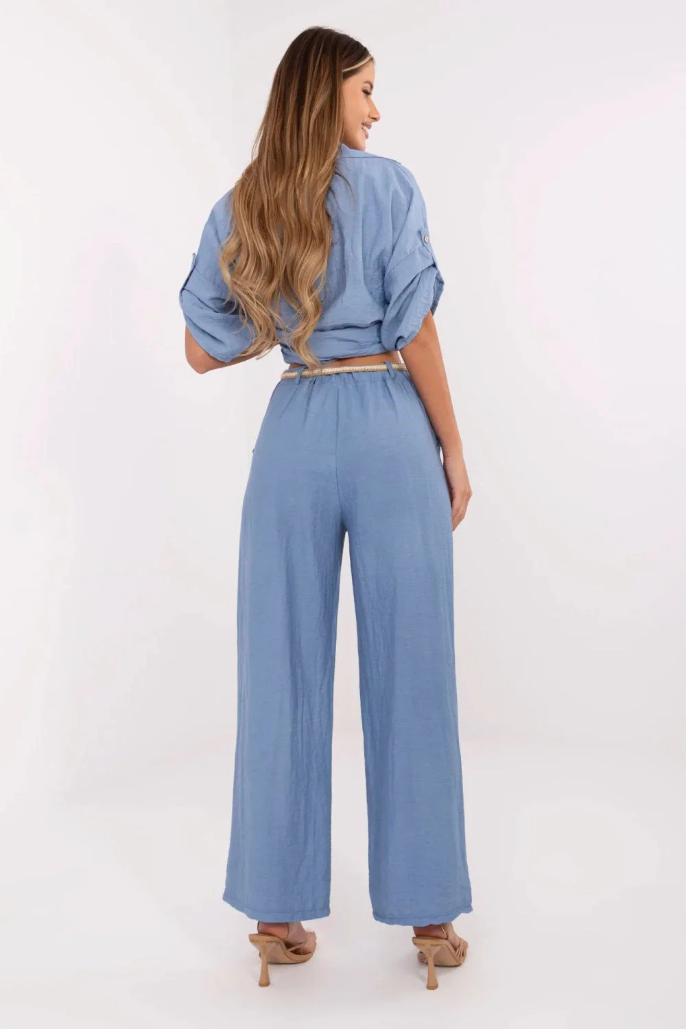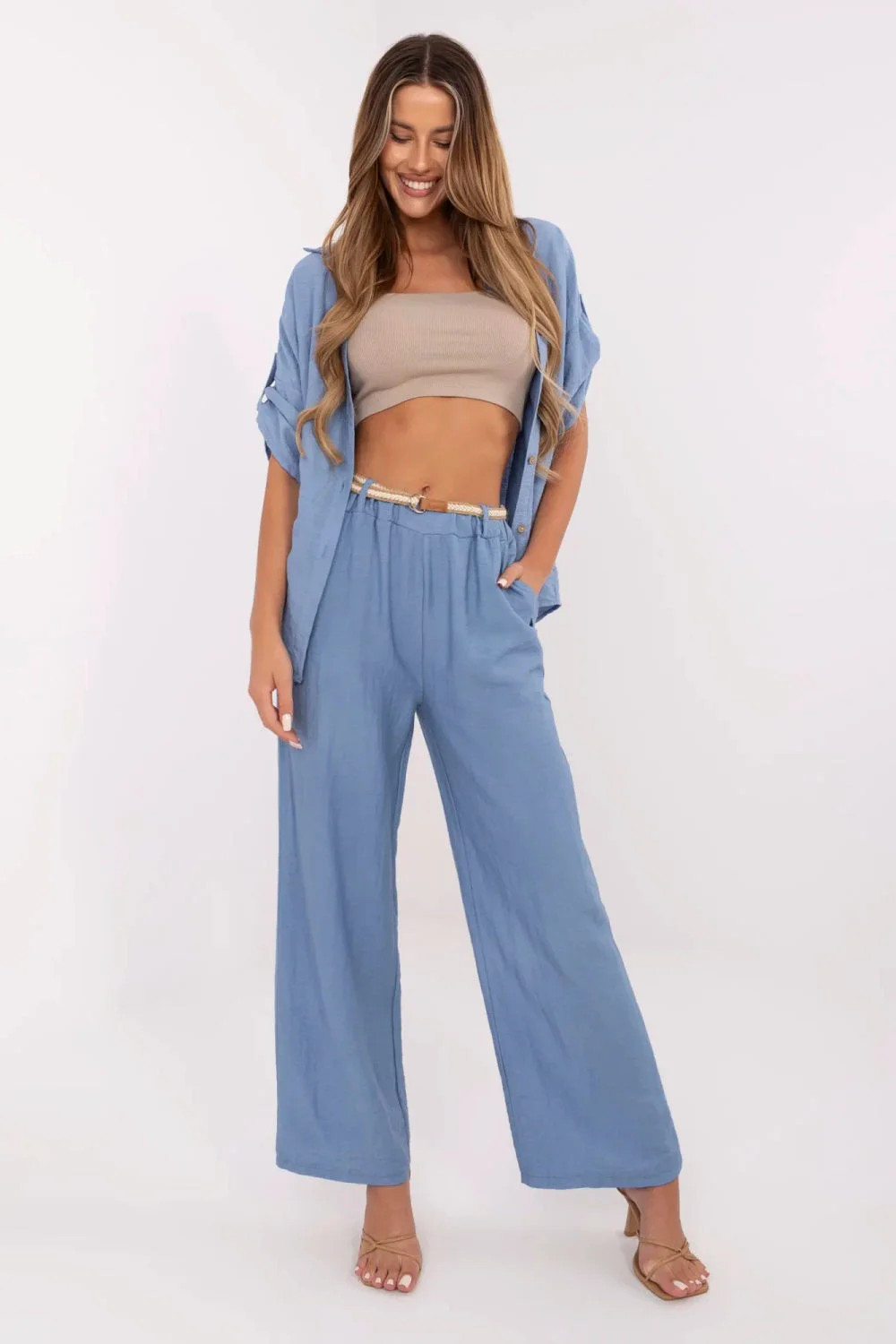 Lehké a stylové dámské látkové kalhoty v boho stylu, vytvořené s ohledem na každodenní pohodlí a volnou eleganci. Vyrobené z prodyšné směsi viskózy a lnu, ideální pro teplejší dny, nabízející prodyšnost a pohodlí. Model s vysokým pasem a širokými nohavicemi, které se krásně usazují při pohybu a zjemňují postavu. Bez klasického zapínání, snadné nasazování díky vsunutí, a zapínací pás umožňuje přizpůsobit pas a zdůraznit postavu. Boční vsunuté kapsy přidávají funkčnost a volný charakter. Hladká látka a jednoduchý střih umožní snadné sladění kalhot s topem, košilí nebo lehkou halenkou, vytvoříte volný, každodenní outfit s nádechem přirozeného volného stylu.