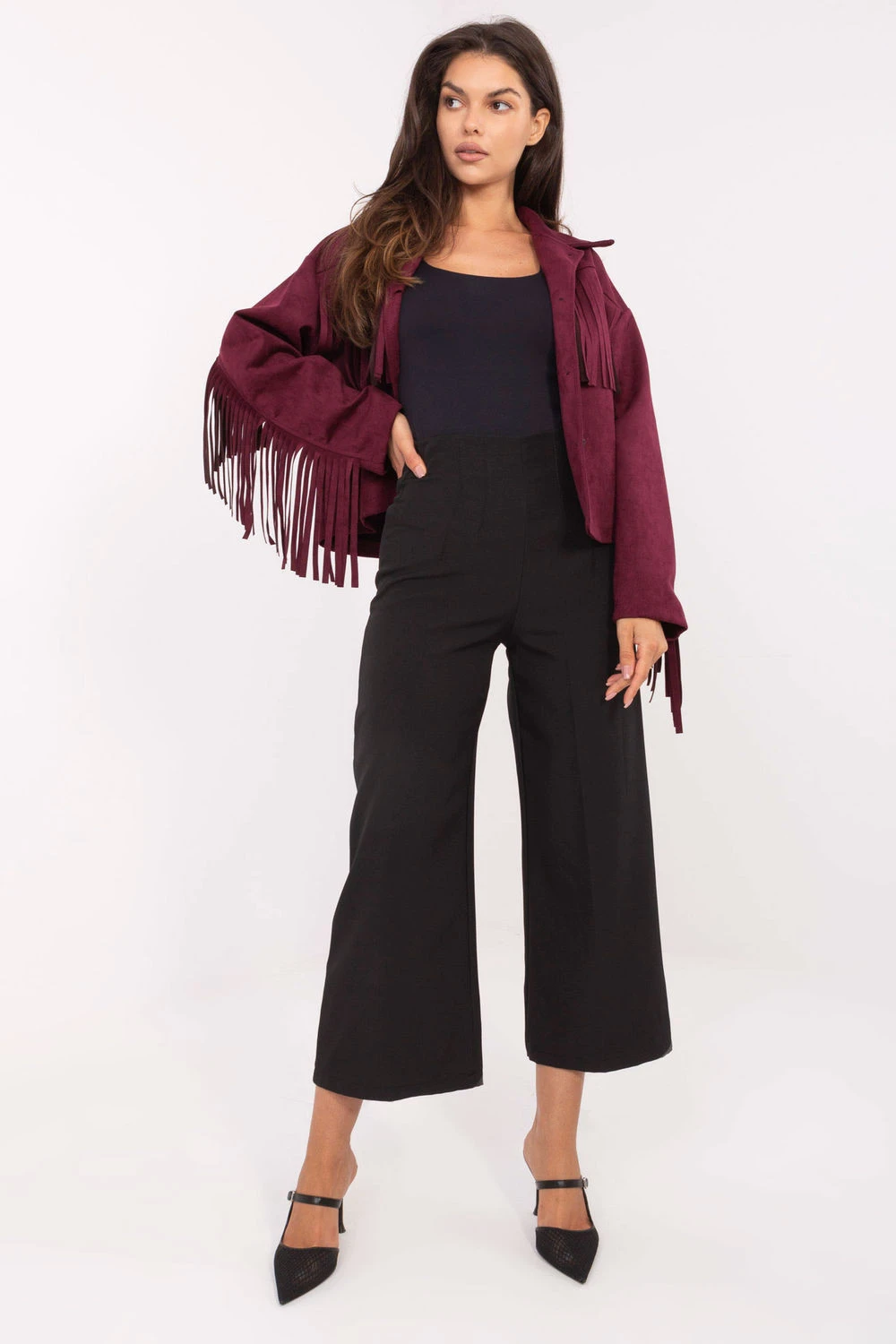 Elegantní kalhoty typu kuloty jsou návrh, který kombinuje styl a pohodlí. Vyrobené z vysoce kvalitního polyesteru s přídavkem elastanu jsou hladké, lehké a pohodlné na nošení. Model s vysokým pasem krásně zdůrazňuje pas, zatímco široké nohavice dodávají postavě lehkost a moderní charakter. Kalhoty se zapínají na skrytý zip umístěný na levé straně, což zaručuje estetické provedení. Chybějící kapsy zdůrazňují elegantní, minimalistický styl. Ideální jak na každý den, do práce, tak i na slavnostní příležitosti, nadčasové kalhoty kuloty, které se osvědčí v mnoha stylizacích.