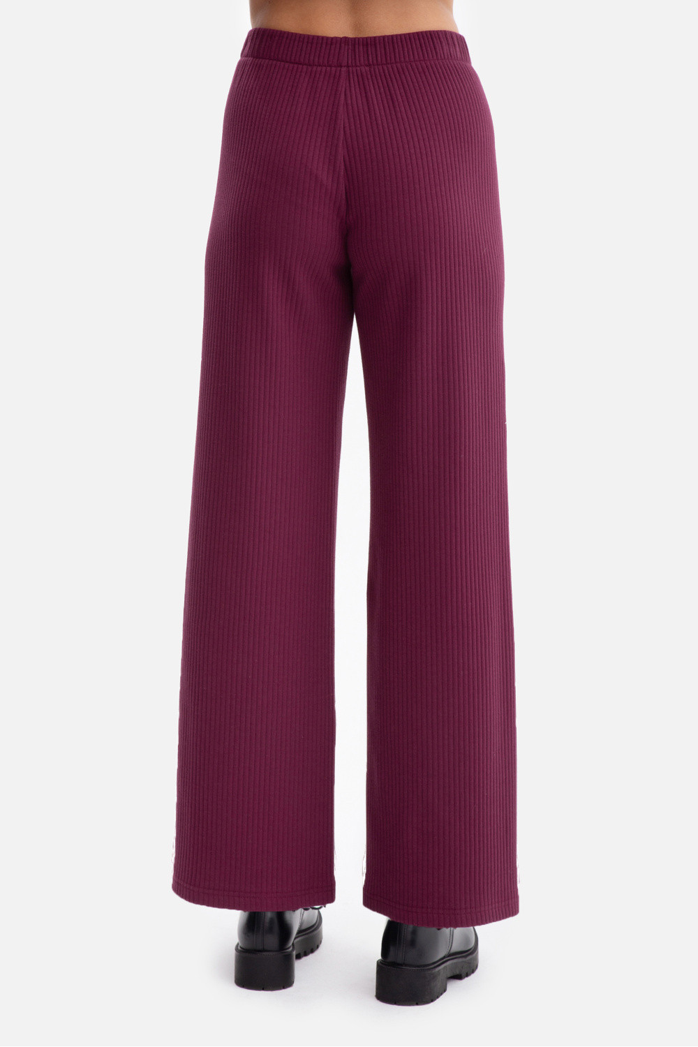 Kalhoty pro ženy vyrobené z žebrované pleteniny o gramáži 250 g, která je měkká, pružná a příjemná na nošení. Model bez kapes a podšívky, s praktickým elastickým páskem v pasu, který zajistí pohodlí a přizpůsobení se postavě. Volný střih, pletené kalhoty jsou přizpůsobené v pasu a bocích a dále se volně skládají, což zaručuje pohodlí a lehkost. Dlouhé, přímé nohavice mírně se rozšiřující ke dnu zjemňují postavu a dodávají celku eleganci. Střední výška pasu zajišťuje, že kalhoty dobře sedí a zdůrazňují pas, a plná délka po zem dodává moderní efekt prodloužení nohou. Navrženo a vyrobeno v Polsku z pleteniny vyrobené v Lodži, tato kombinace pohodlí, kvality a nadčasového stylu.