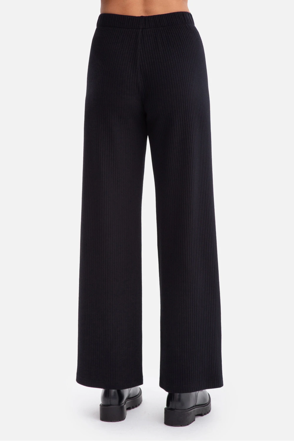 Dámské kalhoty vyrobené z pruhované pleteniny o gramáži 250 g, která je měkká, pružná a příjemná na nošení. Model bez kapes a podšívky s praktickým elastickým páskem v pasu, který zajistí pohodlí a přizpůsobení se postavě. Volný střih, pletené kalhoty jsou přizpůsobené v pasu a bocích a dále volně padají, zajišťují pohodlí a lehkost. Dlouhé, přímé nohavice mírně se rozšiřují směrem dolů, zjemňují siluetu a dodávají celku eleganci. Střední výška pasu zajišťuje, že kalhoty dobře sedí a zdůrazňují pas, a plná délka až na zem jim dodává moderní, prodlužující efekt nohou. Navrženy a vyrobeny v Polsku z pleteniny vyrobené v Lodži, toto spojení pohodlí, kvality a nadčasového stylu.