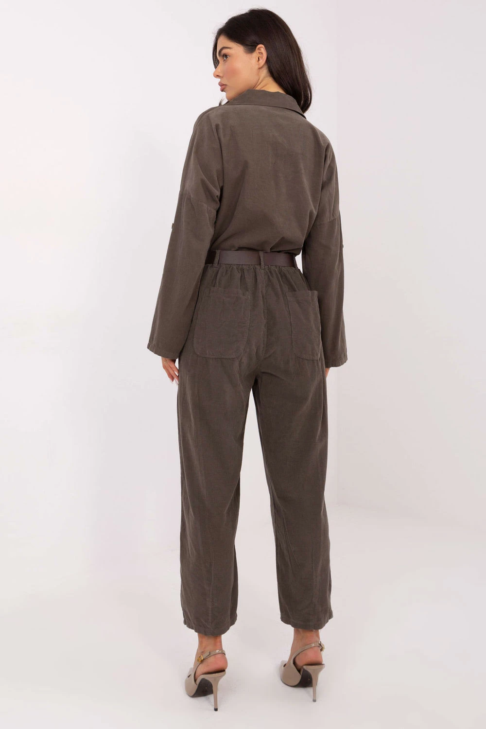 Pohodlné a stylové dámske nohavice vo voľnom strihu, ideálne na každý deň. Vyrobené z mäkkého polyesteru, zaručujú pohodlie pri nosení a voľnosť pohybu. Model má vysoký pás so vsunutou gumou, vďaka čomu sa skvele prispôsobuje postave a zdôrazňuje pás. Nohavice majú bočné vrecká na zips a otvorené vrecká vzadu, čo im dodáva praktickosť. Celok dopĺňa opasok v pase, ktorý tvorí módný a funkčný prvok. Hladký materiál a široké nohavice im dodávajú ľahkosť a nonšalanciu, skvelé na casual a každodenné štýly, či už s elegantnou košeľou alebo voľným tričkom.