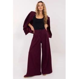 Elegantní dámské kalhoty typu palazzo z materiálu jsou skvělou volbou na každý den, do práce a na formální příležitosti, kdy je důležitý styl a moderní forma. Jejich decentní pruhový vzor opticky zúží postavu a zároveň dodává kalhotám elegantní, klasický charakter. Model je vyroben z vysoce kvalitní směsi nylonu, viskózy, elastanu a polyesteru, díky čemuž jsou kalhoty lehké, prodyšné, elastické a pohodlné na nošení. Vysoký pas krásně zdůrazňuje pas, zatímco široké nohavice typu palazzo dodávají celku volnou, ale velmi elegantní linii. Na horní části přední části jsou ozdobné záložky, které kalhotám dodávají jedinečný charakter a decentně zdůrazňují elegantní styl. Praktické zapínání na zip a knoflík zajistí pohodlí a stabilní přizpůsobení. Jsou to kalhoty, které spojují nadčasový styl s moderním střihem, ideální pro ženy, které ocení eleganci, pohodlí a rafinované detaily.
