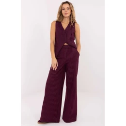 Elegantní dámské kalhoty typu wide leg palazzo jsou nabídkou určenou pro ženy, které oceňují elegantní styl spojený s pohodlím. Skvěle se hodí na každý den, do práce a také na slavnostní příležitosti, dodávají stylizacím lehkost a eleganci. Pruhový vzor jemně zúží postavu a zdůrazní moderní charakter modelu. Kalhoty jsou vyrobeny z vysoce kvalitní směsi nylonu, viskózy, polyesteru a elastanu, jsou lehké, elastické a příjemné na nošení. Vysoký pas krásně zdůrazňuje pas, a široké nohavice typu palazzo dodávají celku elegantní a volný charakter. Model je vybaven zipem a knoflíky, které zajistí stabilní a pohodlné přizpůsobení. Boční vložené kapsy přidávají funkčnost a zachovávají elegantní vzhled. Jsou to kalhoty, které spojují eleganci, pohodlí a nadčasový střih, ideální pro vytváření stylových, ženských outfitů na různé příležitosti.