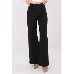Moderní a pohodlné dámské kalhoty s širokými nohavicemi, skvělé pro každodenní i kancelářské stylingy. Vyrobené z směsi viskózy, elastanu a nylonu, jsou měkké, pružné a skvěle padnou na postavě, poskytují pohodlí po celý den. Hladký vzor dominuje, což činí kalhoty univerzálními a snadno kombinovatelnými s různými kousky oblečení. Model má vysoký pas, který zdůrazňuje pas a zúžuje postavu. Kalhoty nemají žádné zapínání, což zvyšuje pohodlí nošení, rychle se oblékají a jsou pohodlné. Široké nohavice dodávají celku lehkost a moderní charakter, zatímco absence kapes zajišťuje hladkou, minimalistickou linii. Ideální pro ženy, které ocení pohodlí, jednoduchost a moderní styl.