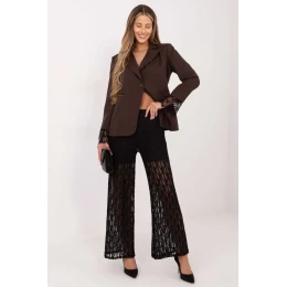 Elegantní krajkové široké kalhoty pro ženy jsou stylovým návrhem, který se skvěle hodí jak na každý den, tak i na formální nebo společenské události. Model kombinuje pohodlí nošení s výjimečným ženským designem. Kalhoty jsou vyrobeny ze směsi viskózy a elastanu, co zajišťuje měkkost, pružnost a pohodlné přizpůsobení se postavě. Různorodá struktura materiálu dodává celku elegantní charakter a zdůrazňuje dekorativní styl krajky. Vysoký pas a elastický pás krásně zdůrazňují pas a zaručují pohodlí po celý den. Široké nohavice ve stylu wide leg opticky prodlužují nohy a dodávají postavě lehkost. Model bez zapínání, nasazovaný přes boky, je praktický a pohodlný v nošení. Podšívka v horní části zajišťuje dostatečné krytí a pohodlí nošení, aniž by narušovala jemný vzhled materiálu. Jedná se o skvělou volbu pro ženy, které chtějí spojit eleganci s moderním střihem a pohodlím.