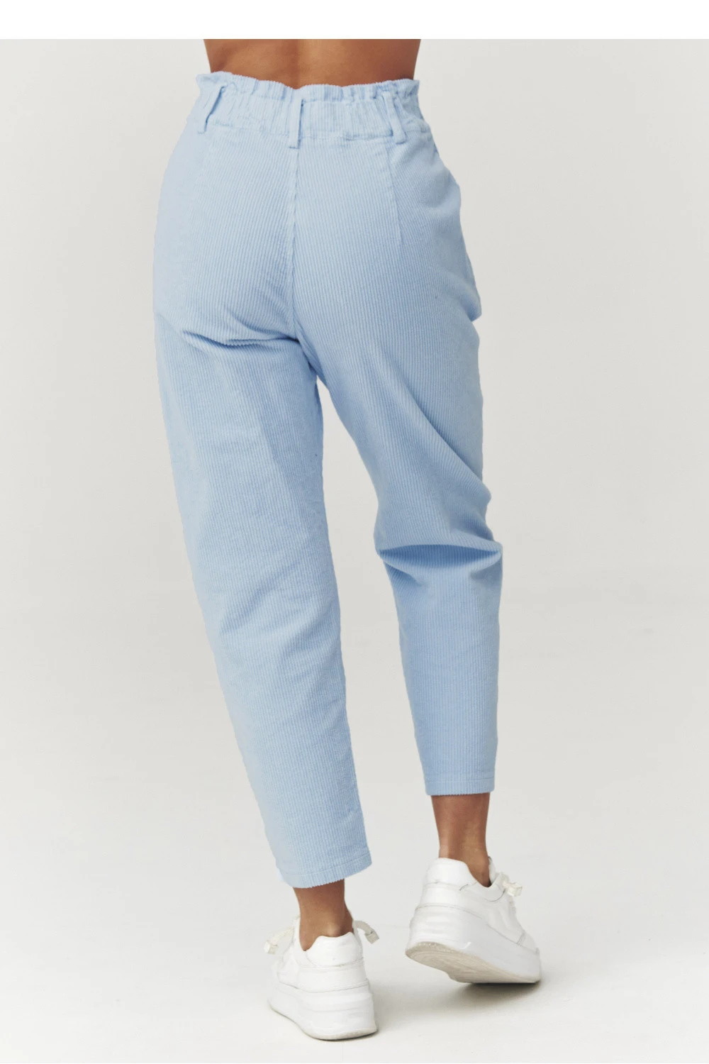 Elegantní dámské štručkové kalhoty s módním a jednoduchým střihem jsou ideální volbou pro ženy, které ocení pohodlí a nadčasový styl. Vyrobené z měkkého a příjemného na dotek štruksu krásně padnou na postavě a zajistí pohodlí po celý den. Model s vysokým pasem zdůrazňuje pas a opticky prodlužuje nohy, zatímco lehce zkrácené nohavice dodávají celému outfitu moderní charakter. Kalhoty se skvěle hodí jak do každodenních stylizací s teniskami, tak i do elegantnějších kombinací s kotníčkovými botami nebo mokasíny. Vyrobeno v Itálii.