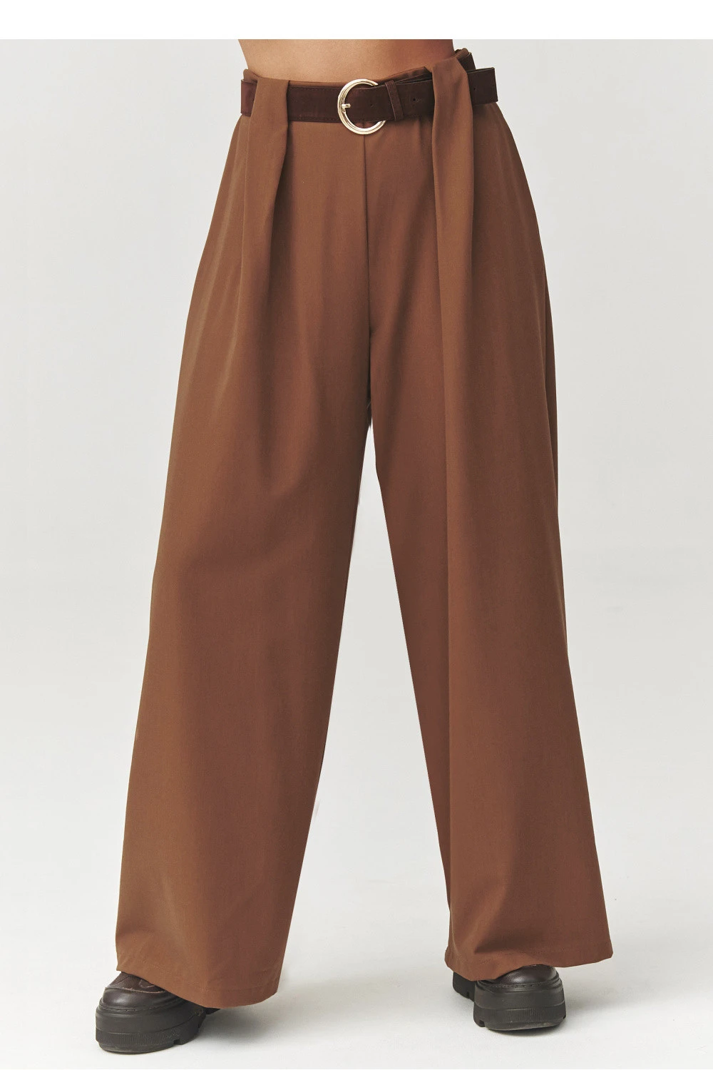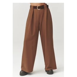 Vložte do svého šatníku špetku elegance a pohodlí díky našim širokým kalhotám s vysokým pasem a záložkami. Jedná se o skvělou volbu pro ženy, které oceňují styl a pohodlí. Kalhoty jsou vyrobeny z vysoce kvalitní látky, která krásně padne a skvěle se hodí jak do každodenního nošení, tak do formálních stylizací. Díky širokému nohavici a jemným záhybům kalhoty opticky prodlužují postavu a ozdobný pásek s přezkou jim dodává moderní charakter. Skvěle se kombinují s košilí, sako nebo objemným svetrem. Jedná se o ideální model jak do práce, tak na společenská setkání, vsaďte na univerzální, nadčasový střih a decentní barevnost, která nikdy nevyjde z módy. Vyrobeno v Itálii.