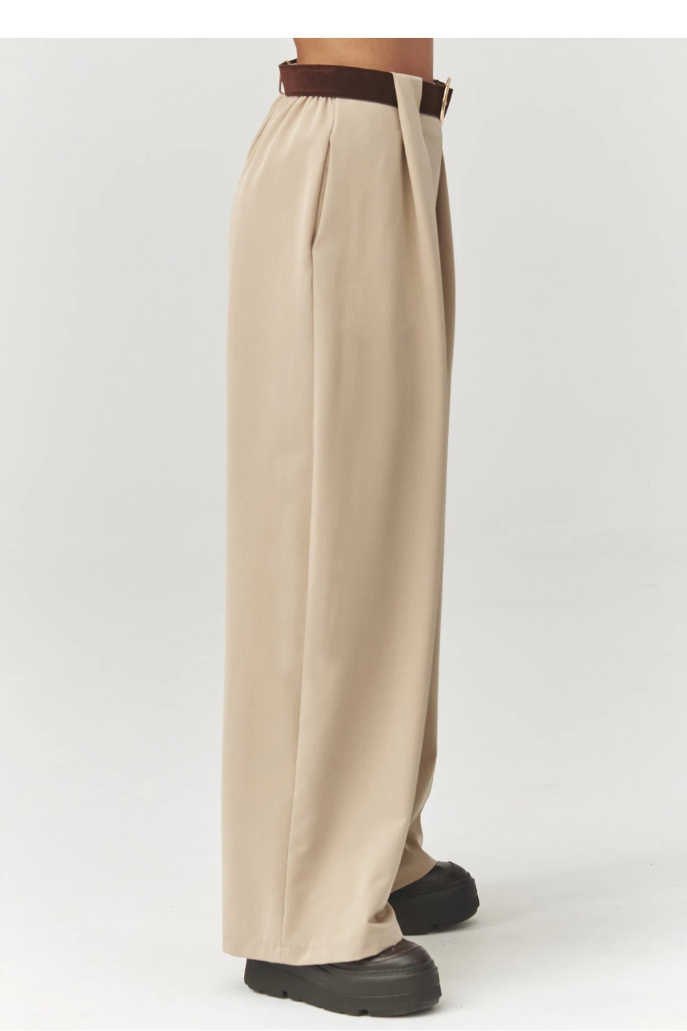 Vložte do svého šatníku špetku elegance a pohodlí díky našim širokým kalhotám s vysokým pasem a záložkami. Jedná se o skvělou volbu pro ženy, které ocení styl a pohodlí. Kalhoty jsou vyrobeny z vysoce kvalitní látky, která krásně padne a skvěle se hodí jak do každodenního nošení, tak i do formálnějších stylizací. Díky širokým nohavicím a decentním záložkám opticky prodlužují postavu, a ozdobný pásek s přezkou jim dodává moderní charakter. Skvěle se hodí ve dvojici s halenkou, sako nebo objemným svetrem. Jedná se o ideální model jak do práce, tak i na společenská setkání, vsaďte na univerzální, nadčasový střih a střízlivý barevný design, který nikdy nevyjde z módy. Vyrobeno v Itálii.