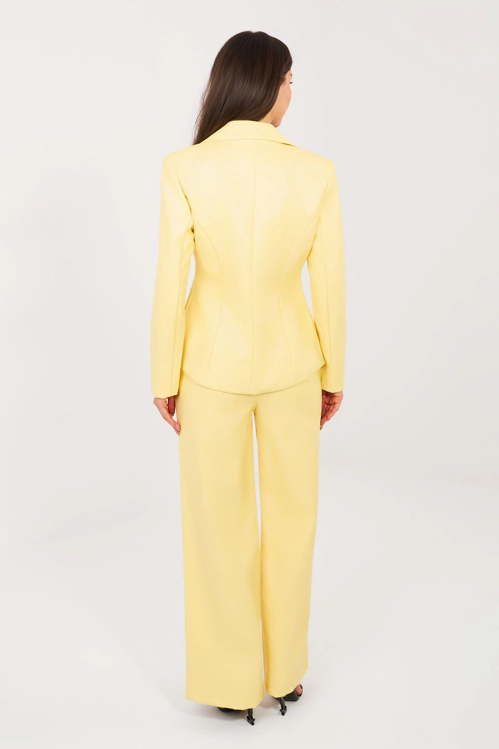 Stylové dámské kalhoty z ekokože ve střihu wide leg jsou módní a univerzální volbou pro každodenní outfit i do práce. Vyrobené z vysoce kvalitního materiálu kombinující viskózu a polyuretan spojují efektní vzhled s pohodlím nošení. Model s hladkým vzorem a vysokým pasem krásně zdůrazňuje pas a opticky prodlužuje postavu. Široké nohavice dodávají kalhotám moderní a uvolněný charakter a zajišťují pohodlí při nošení. Praktické boční kapsy zvyšují funkčnost modelu. Kalhoty se zapínají na zip a knoflík, což zaručuje dobré přizpůsobení a stabilitu. Ideální kombinace s elegantní halenkou a sako nebo s volným svetrem nebo topem.