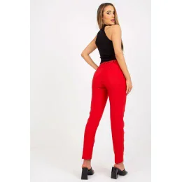 Dámské kalhoty s vysokým pasem, zúženými nohavicemi, zapínáním na knoflík a zip. Kalhoty mají na bocích kapsy a jsou doplněny páskem.