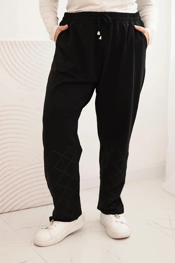 Dámské kalhoty Plus Size bavlněné s kapsami černé