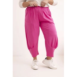 Dámské kalhoty Plus Size s nízkým model 21924465 a gumou v pase růžové - K-Fashion