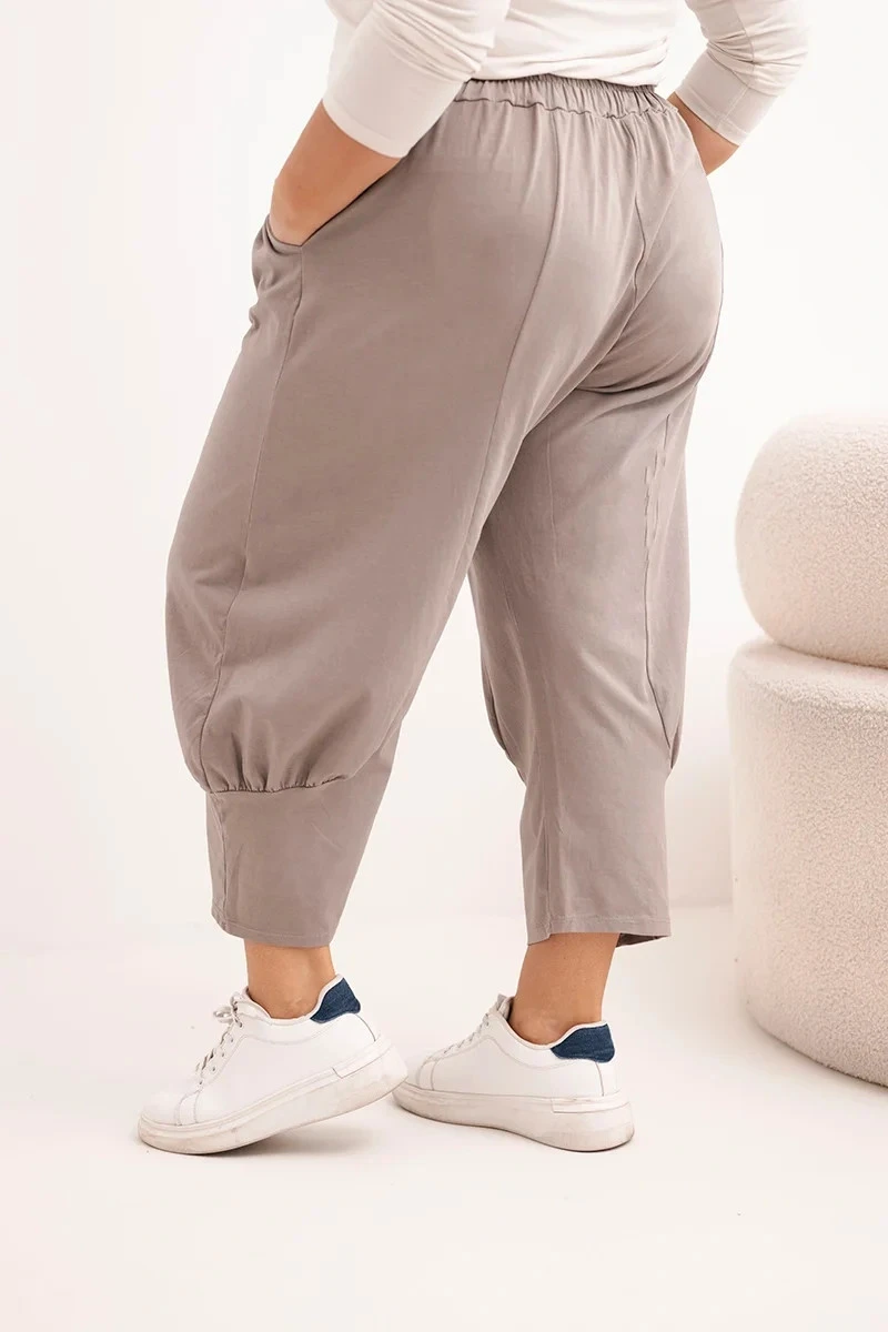 Dámské kalhoty Plus Size s nízkým model 21924475 a gumou v pase fango - K-Fashion