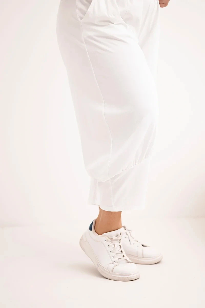 Dámské kalhoty Plus Size s nízkým sedem a gumou v pase bílé