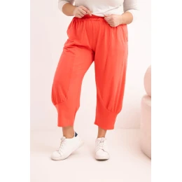 Dámské kalhoty Plus Size s nízkým sedem a gumou v pase korálové