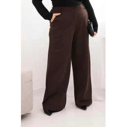 Dámské kalhoty Plus Size s širokou nohavicí a elastickým pasem hnědé