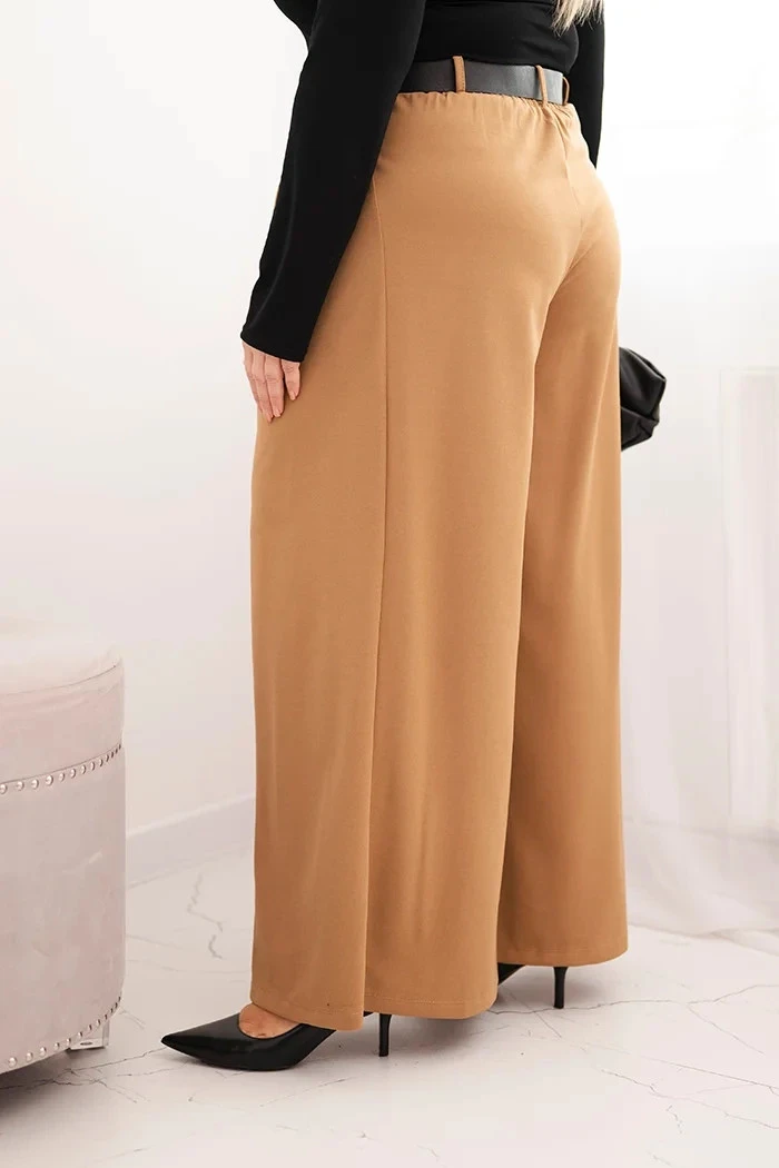 Dámské kalhoty Plus Size s širokou nohavicí a páskem camelové