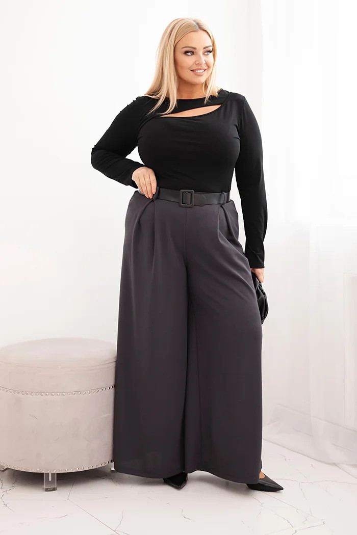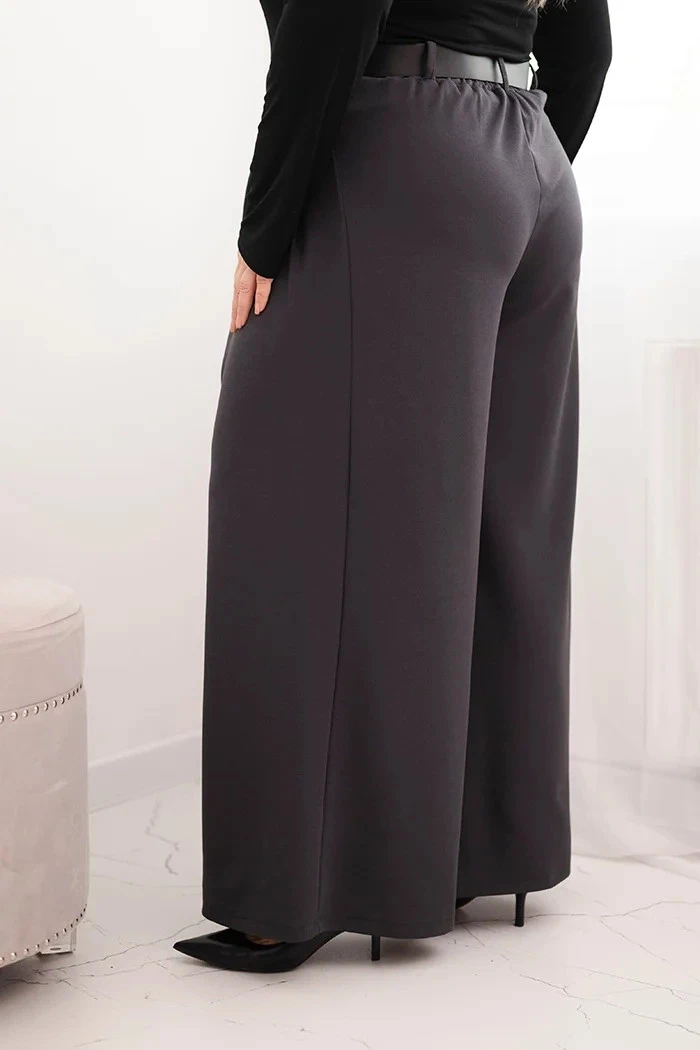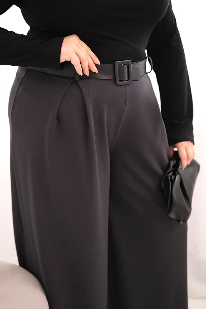Dámské kalhoty Plus Size s širokou nohavicí a páskem grafitové