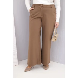 Dámské kalhoty Plus Size s širokou nohavicí a vysokým pasem světlé model 21881345 - K-Fashion