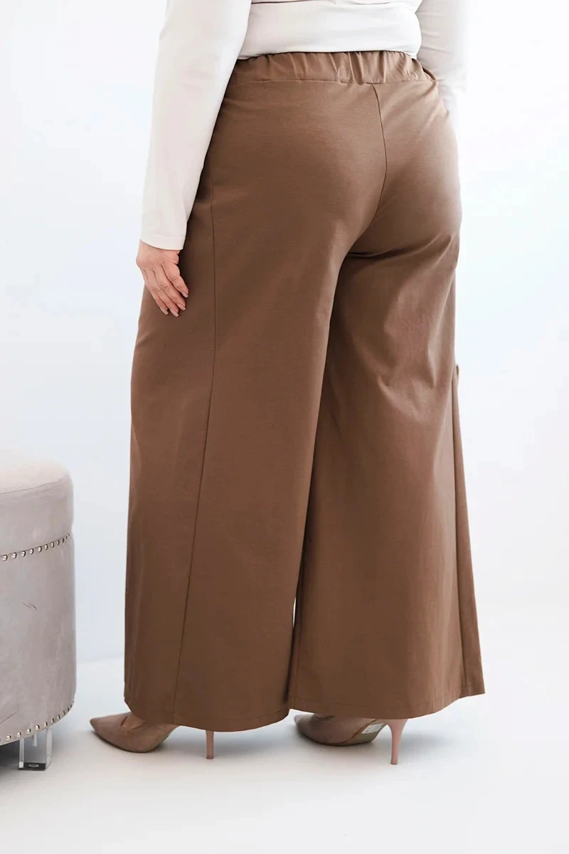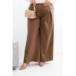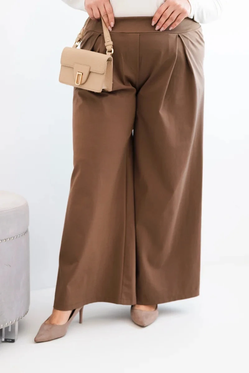 Dámské kalhoty Plus Size s širokými nohavicemi a plisováním camelové