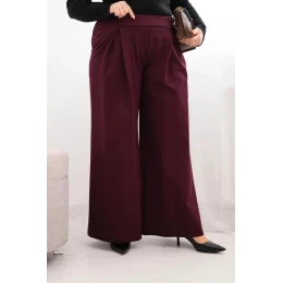 Dámské kalhoty Plus Size s širokými nohavicemi a plisováním švestkové