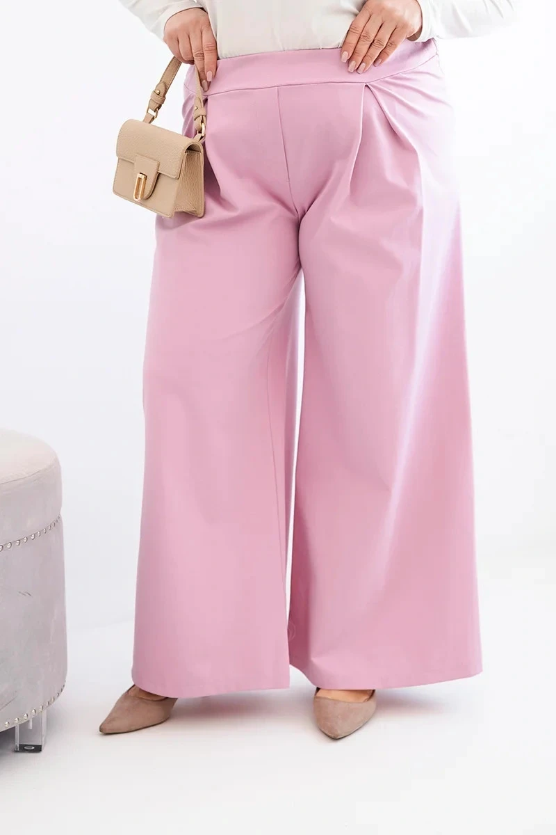 Dámské kalhoty Plus Size s širokými nohavicemi a skladáním jasně fialové