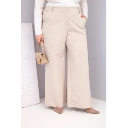Dámské kalhoty Plus Size s širokými nohavicemi a vysokým pasem béžové