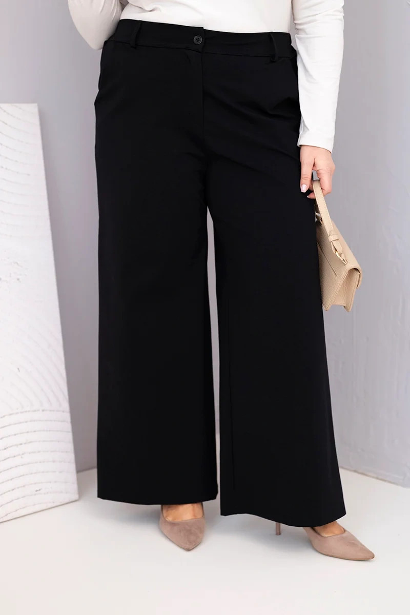 Dámské kalhoty Plus Size s širokými nohavicemi a vysokým pasem černé