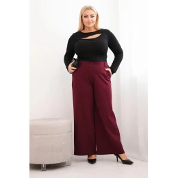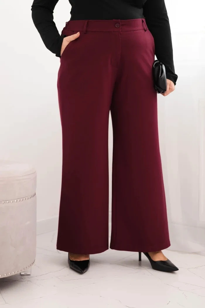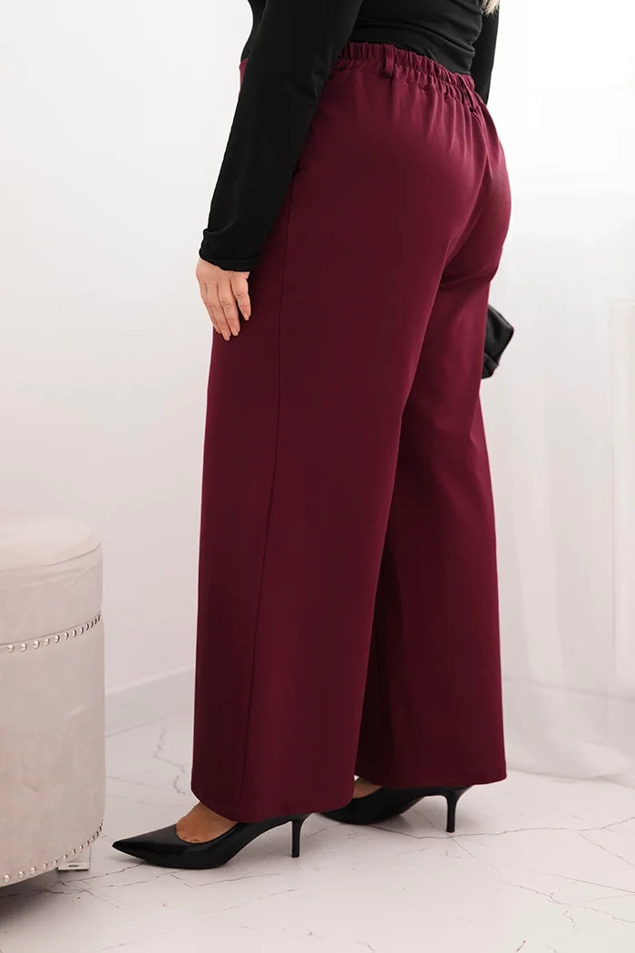 Dámské kalhoty Plus Size se širokou nohavicí a páskem čokoládové