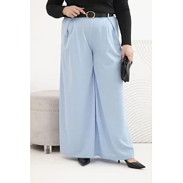 Dámské kalhoty Plus Size se širokou nohavicí a páskem modré