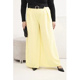 Dámské kalhoty Plus Size se širokou nohavicí a páskem žluté