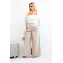 Dámské kalhoty Plus Size se širokými nohavicemi a model 21911608 tmavě béžové - K-Fashion