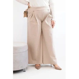 Dámské kalhoty Plus Size se širokými nohavicemi a plizováním tmavě béžové