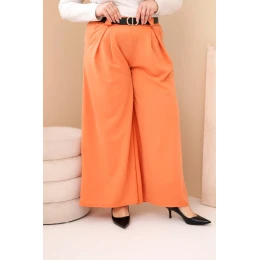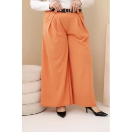 Dámské kalhoty Plus Size viskózové s širokou nohavicí a pásem meruňkové