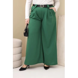 Dámské kalhoty Plus Size viskózové s širokými nohavicemi a páskem zelené