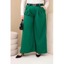 Dámské kalhoty Plus Size viskózové s širokými nohavicemi a páskem zelené